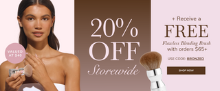 Use the code BRONZED for 20% off, free minis and a FREE Flawless Blending Brush with orders $65+.