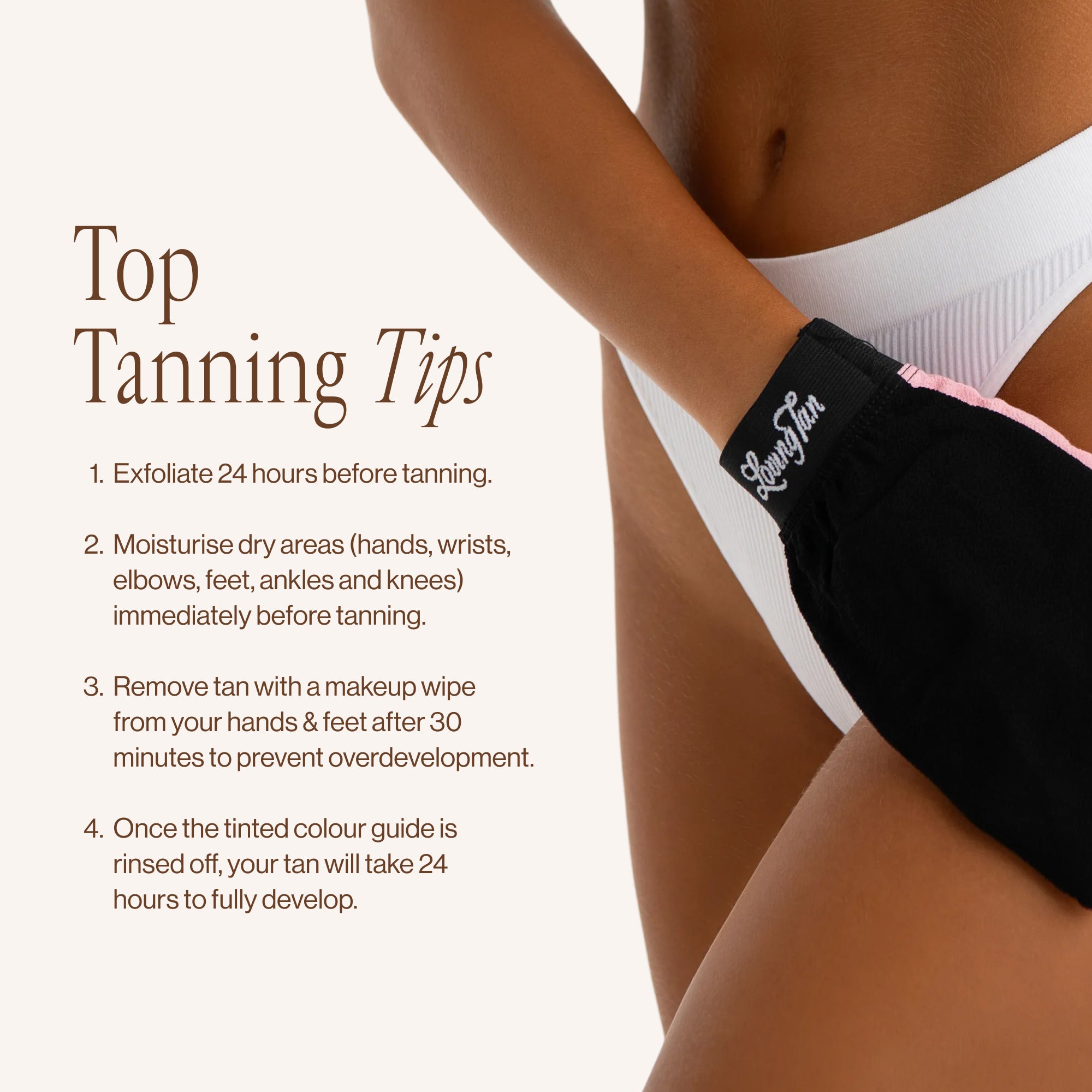 The Tan Removing & Skin Polishing Glove will make removing your tan easier than ever. It has been intelligently designed to completely remove dead skin cells and to prepare your skin for your next application.